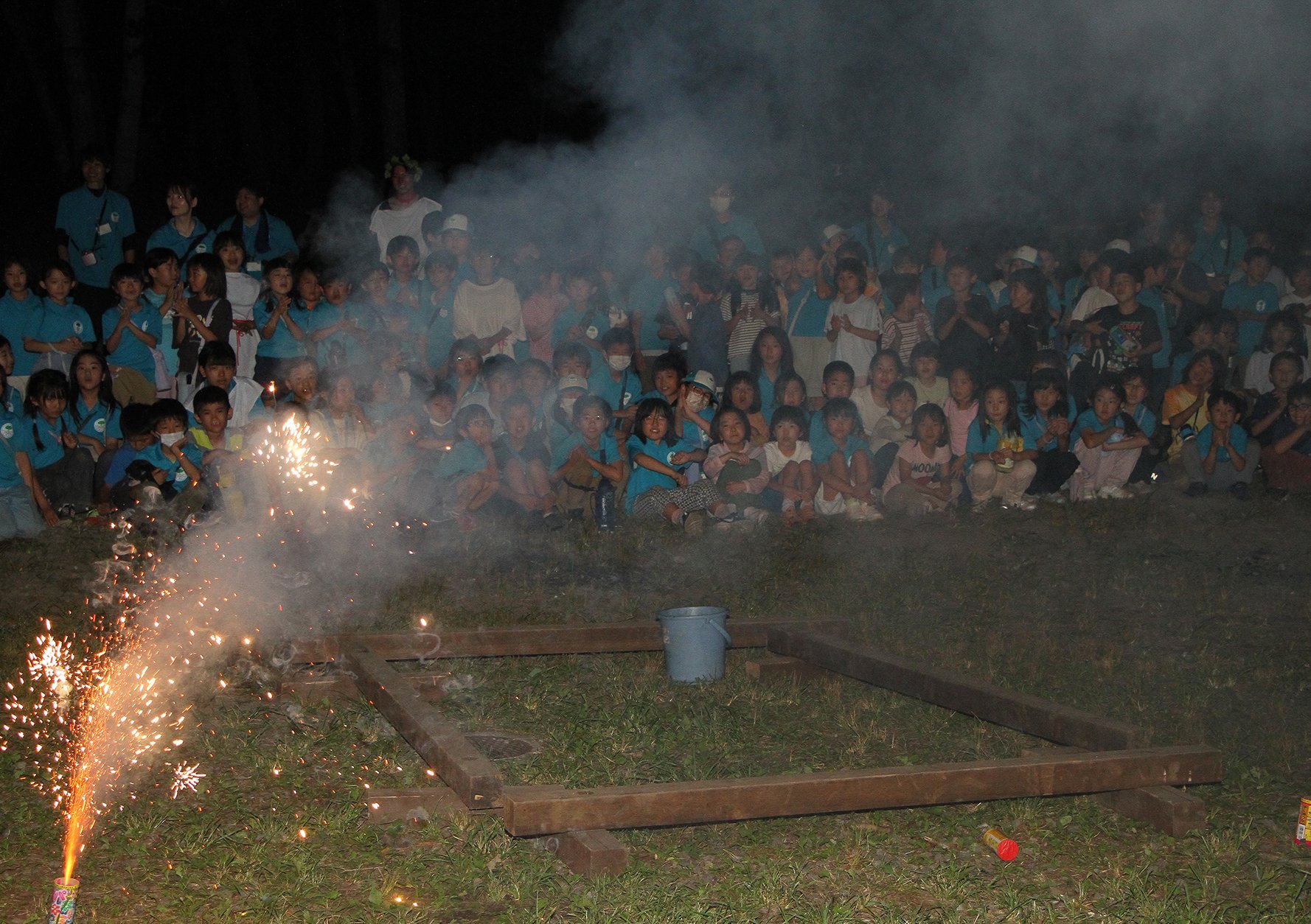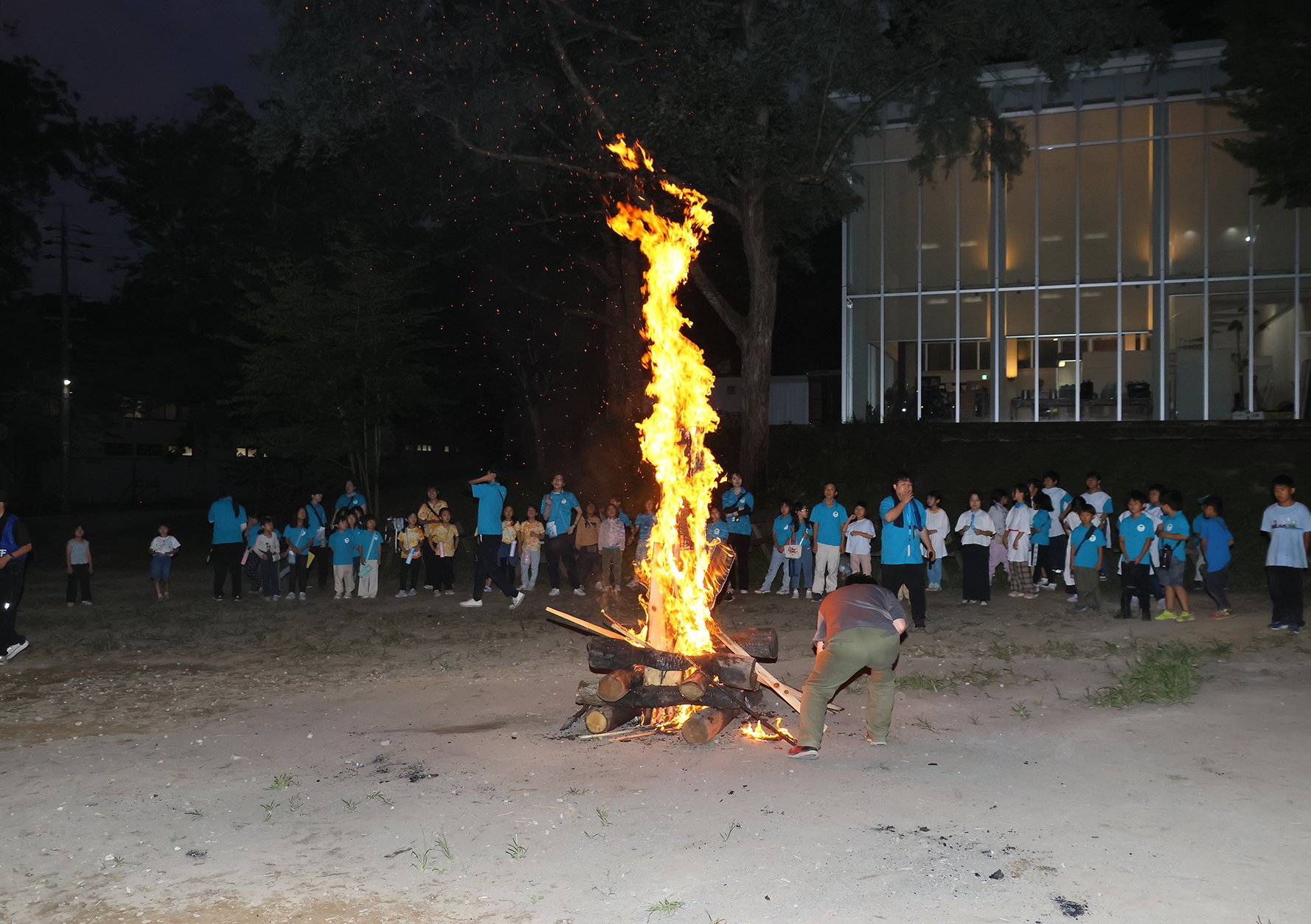 日が暮れ始めたら、サマーキャンプの醍醐味でもあるキャンプファイヤーの時間です。