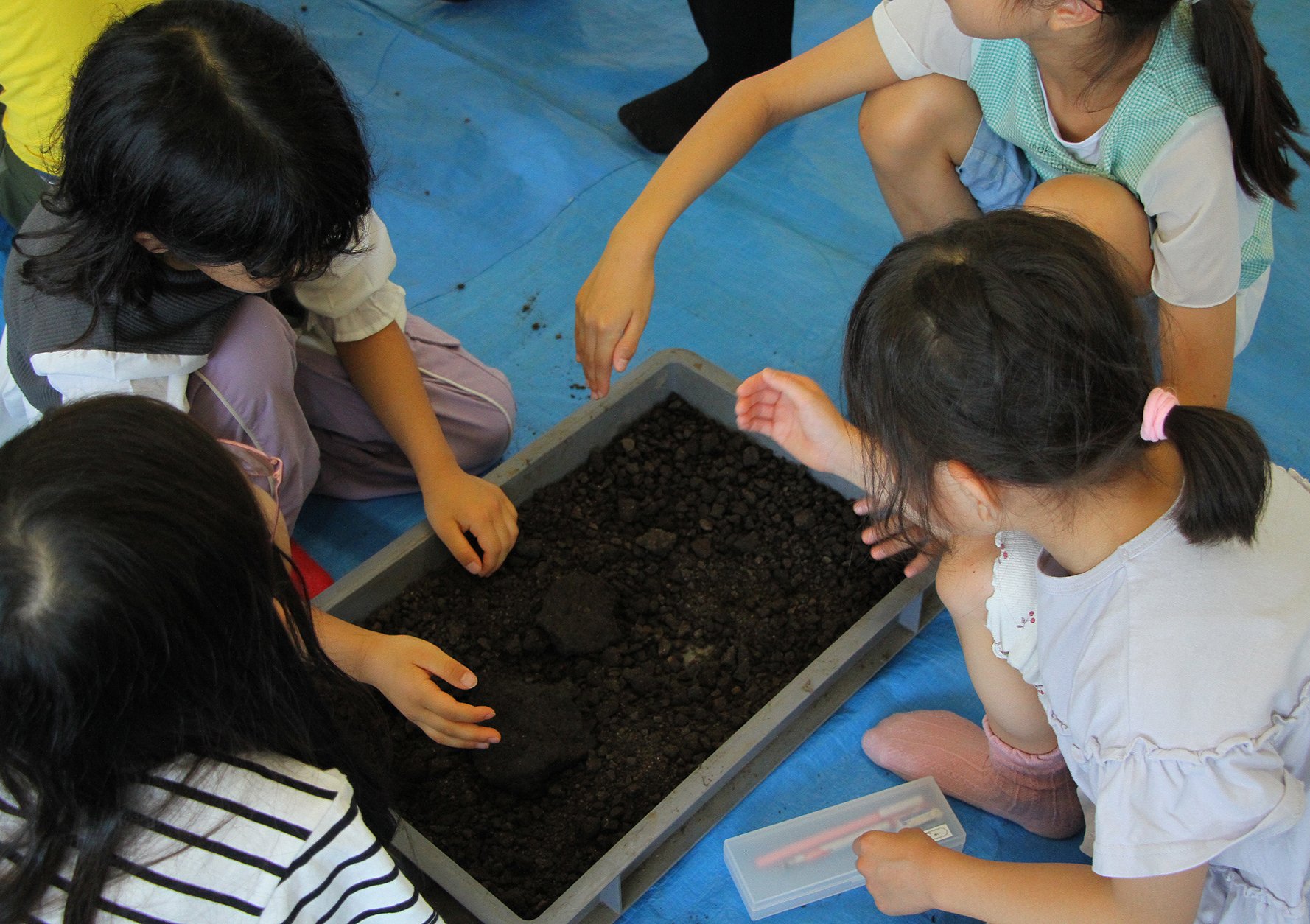 黙々と作業を進めていくと「なにこれ?!」「ピカピカするもの発見!」「見つけた!」という子どもたちの喜ぶ姿がありました。