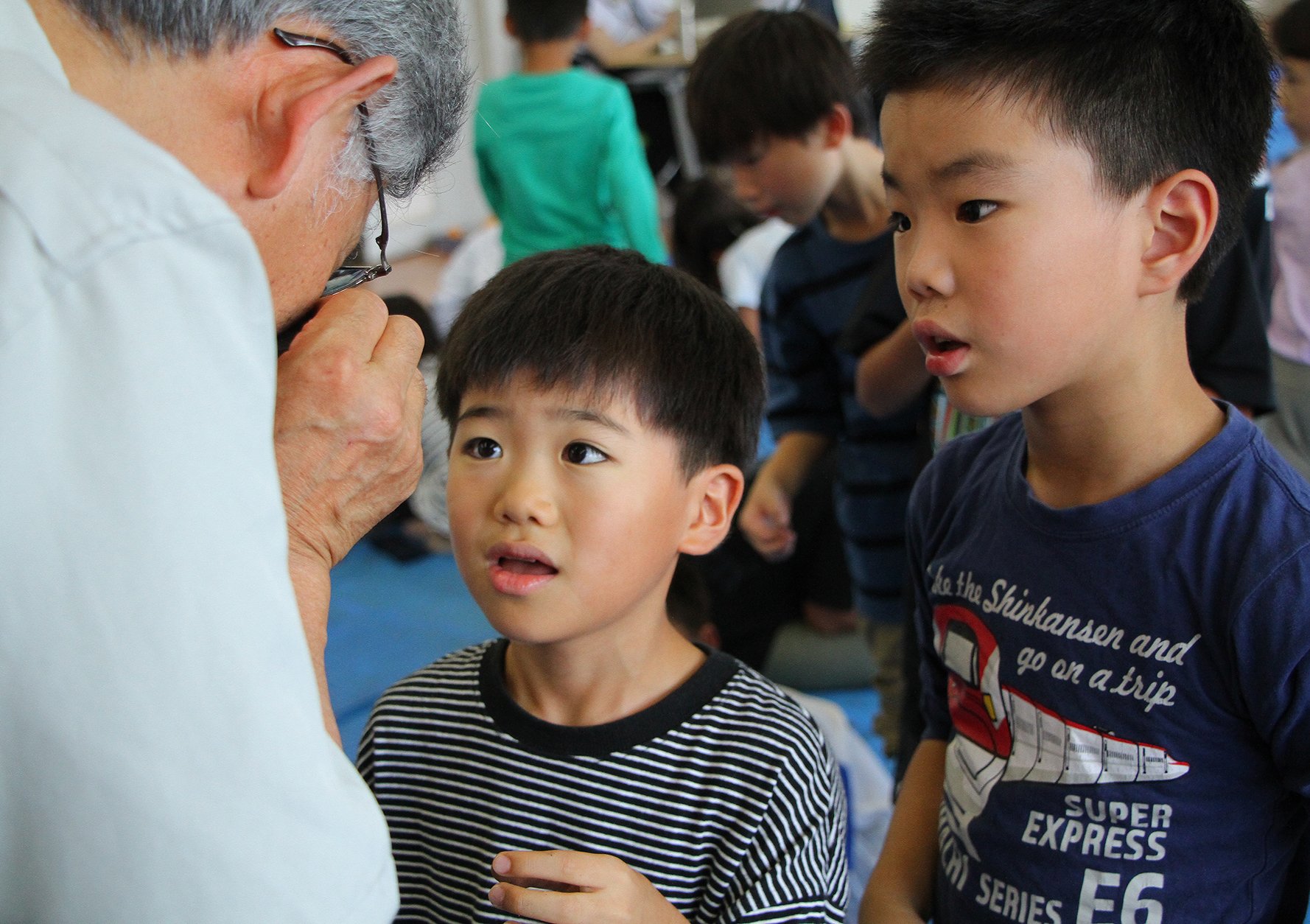 ナウマンゾウ博物館の館長さんに、なんの化石なのか正体を教えてもらう時のみんなの緊張とワクワクが混ざった表情が印象的でした。